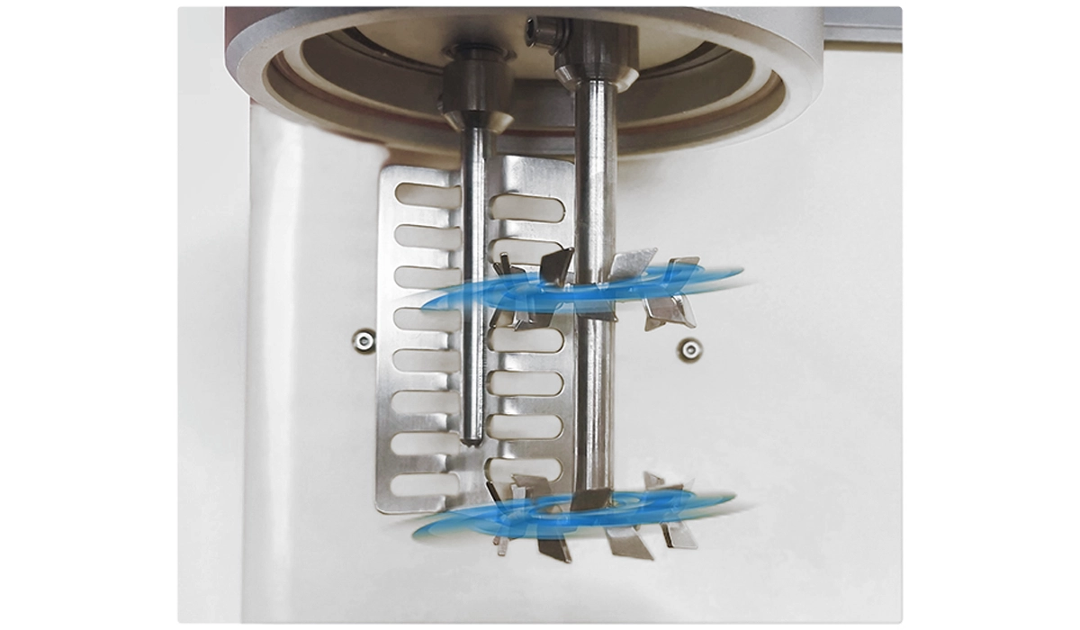 The blender is controlled by a touch screen and supports multi-speed operation. It comes with a standard dual-axis screw-type stirring paddle, and an optional single-axis blade-type stirring paddle can also be selected. Different stirring shaft forms and combinations are available according to the size of the mixing tank, enabling rapid and uniform mixing and dispersion of materials in all directions.