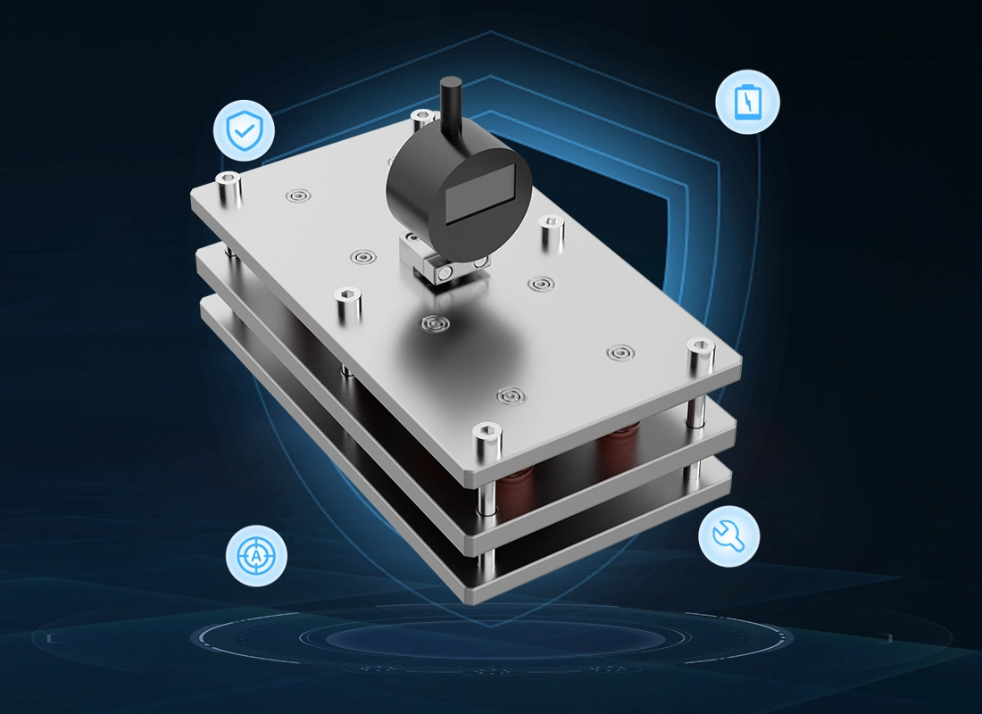 Equipped with a precision pressure sensor mounted on the top of the clamp, it is used to measure and display pressure in real time. It maintains a constant gap when the battery swells, and through the change of the spring, it maintains constant pressure when the battery contracts.